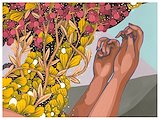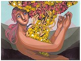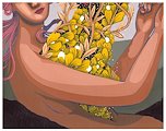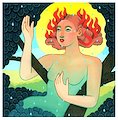 Description: The word 'obsecration' means 'earnest pleading or supplication. When deciding the concept for this piece, it was important to me to include all of the listed elements under the theme. The woman is meant to be Earth, the tree personified. She finds herself on fire so she's praying (ether) and the prayer is represented by the halo around her head .. which also encompasses her dilemma. Her prayer is answered and she's doused with water in the form of rain. /
